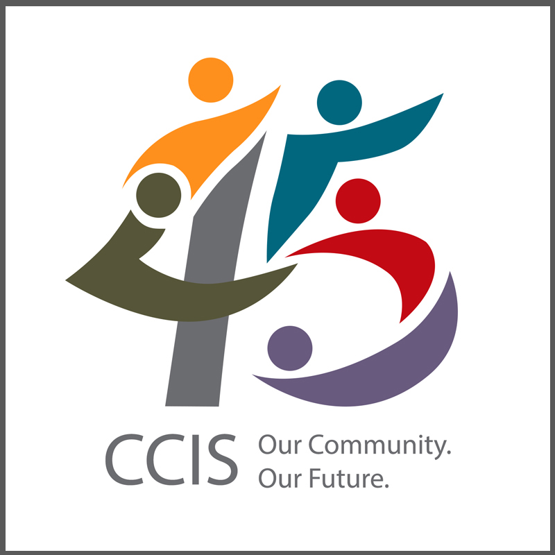 The CCIS 45th Anniversary logo represents unity, support, and integration through three stylized arms embracing the number 45, symbolizing protection and guidance for newcomers. The institutional colors reflect diversity, strength, and hope, while the circular composition conveys community and continuity. The clean, solid typography reinforces the organization’s institutional presence and its 45-year commitment to building futures.